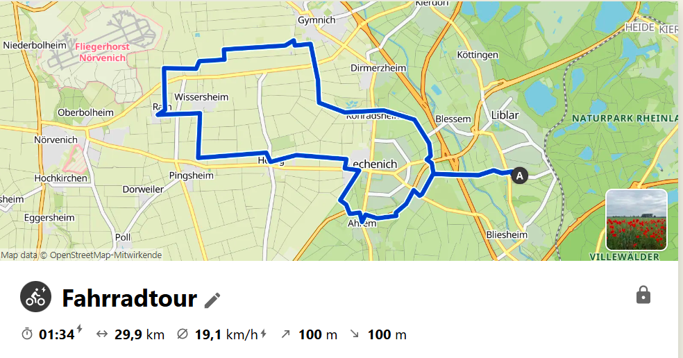 Es ging von Liblar über Lechenich und Konradsheim nach Wissersheim. Über Rath, Ahrem und Lechenich dann wieder zurück nach Liblar.