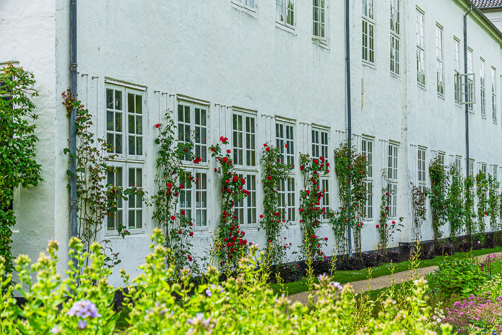 auf Deutsch Schloss Gravenstein, ist die Sommerresidenz der dänischen Königsfamilie und liegt malerisch in der Stadt Gråsten in Südjütland. Die heutige dreiflügelige Schlossanlage stammt aus dem 18. und 19. Jahrhundert, nachdem frühere Bauten durch Brände zerstört wurden. Besonders bekannt ist das Schloss für seine barocke Schlosskirche von 1699 und den weitläufigen Schlosspark im englischen Stil, der direkt an einem See liegt.