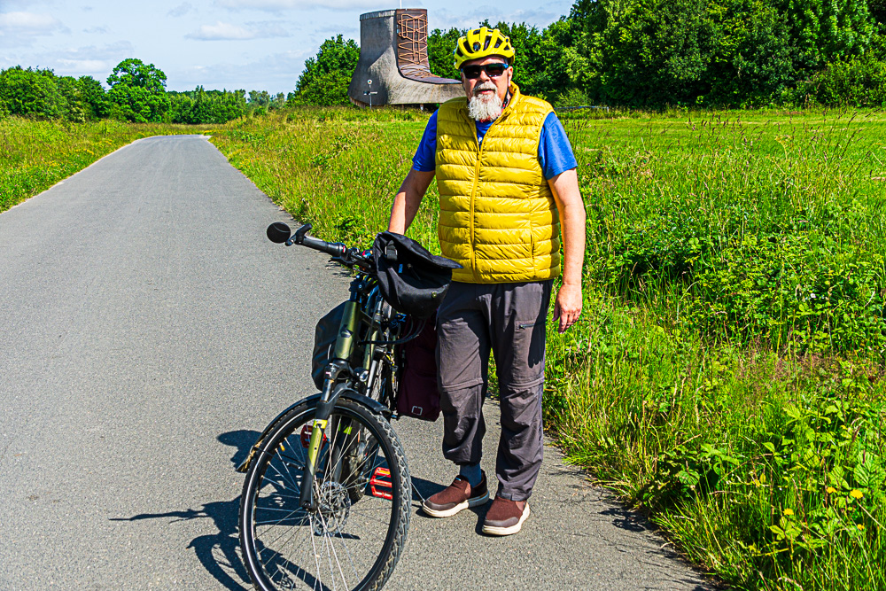Der Turm ist 12 Meter hoch, und über eine Treppe im Absatz kommst du ganz easy zur Aussichtsplattform. Ausser Weiden, Äckern, Bäumen und Industrie sieht man nichts.