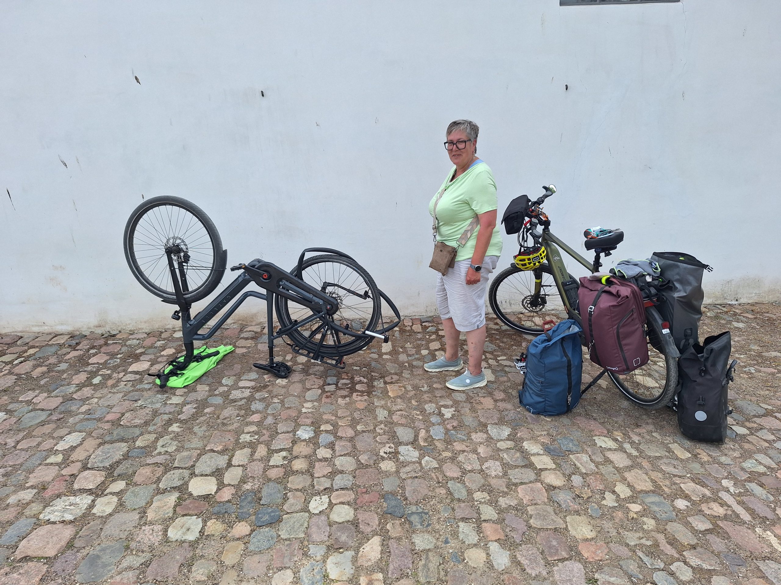 – Mit 42 km eine eher laue Etappe. Leider mit sehr viel Straßenanteil und einigen doch sehr rücksichtlosen Autofahrern. Beim Versuch, das Schloss in Kolding zu besichtigen, hatte Claudia sich einen Platten eingehandelt und die Hilfe-Hotline der Barmenia war an einem Sonntag eher an einem Schwätzchen interessiert, als an wirklich konkreter Hilfe. So richtig verstanden, wie unsere Reise funktioniert hat von den vier Agenten am Telefon keiner.