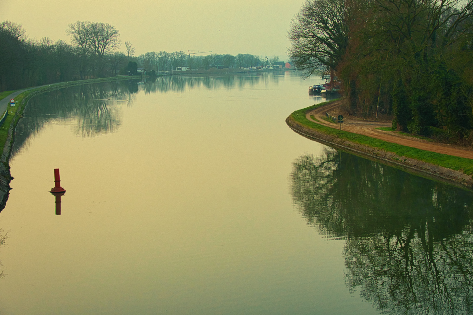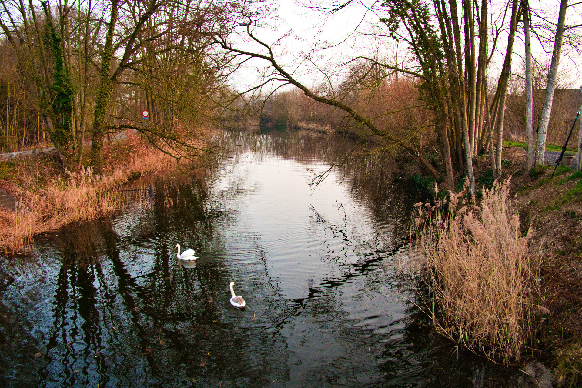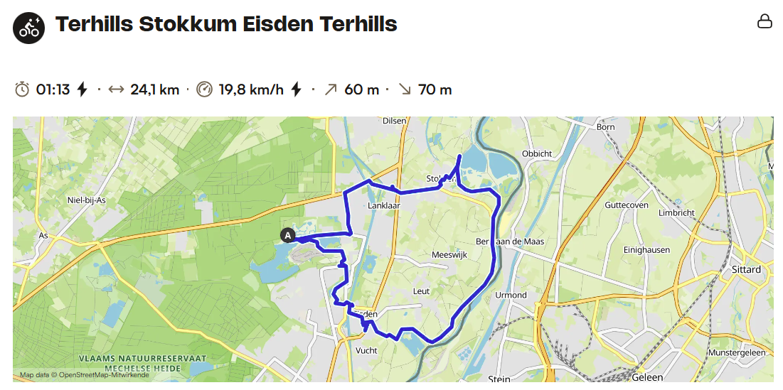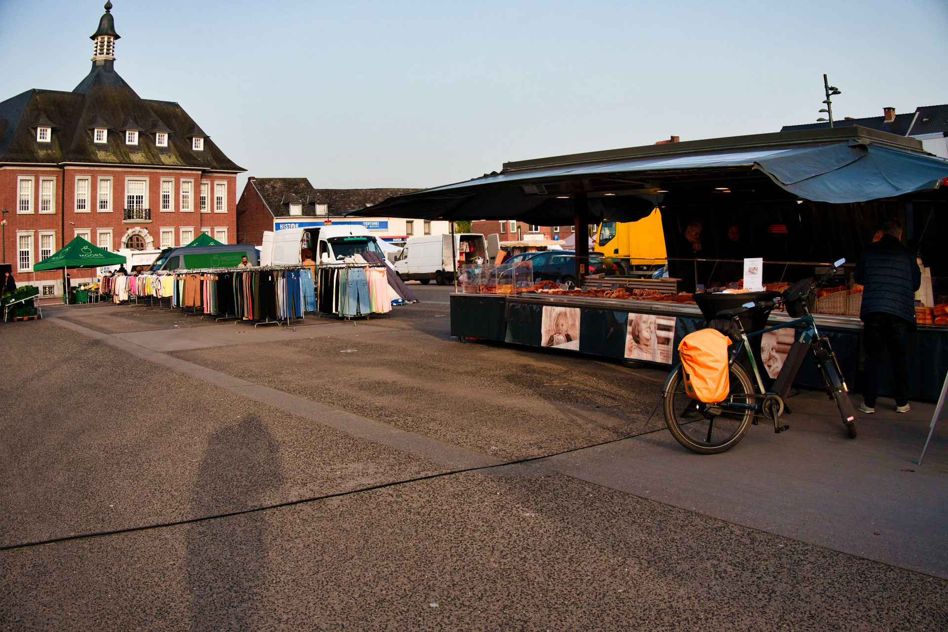 Samstags morgens bin ich über den Zuid Willemsvaart-Kanal nach Stokkum und durch das Natuurgebied Negenoord-Kerkeweerd zur Maas. Von dort über Eisden zurück. In Eisden war Wochenmarkt, dort habe ich dann zwei Tüten Brötchen für’s Frühstück erstanden.