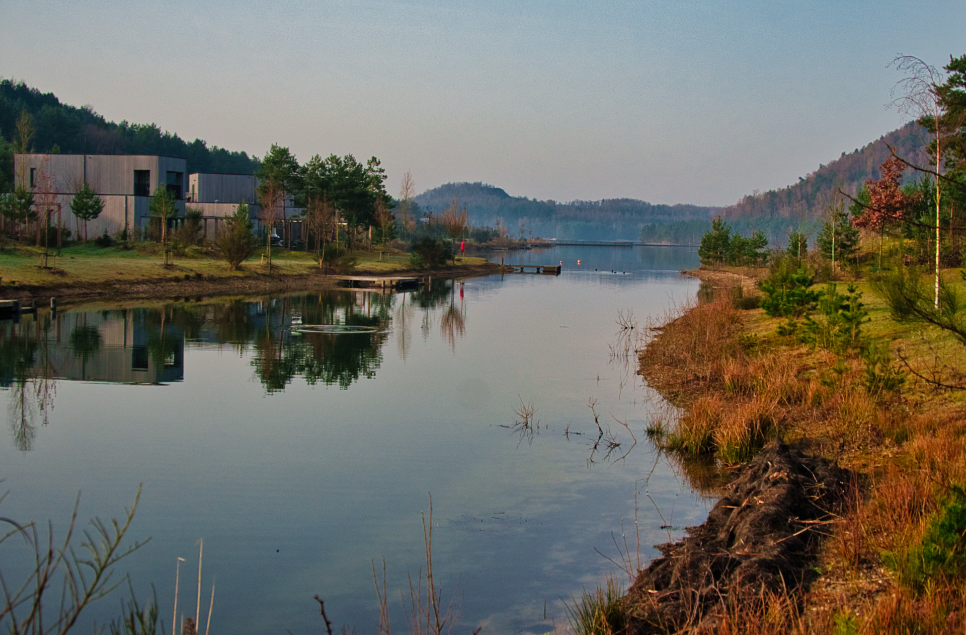 Ein beliebter Superdeppenfehler bei Fotografen ist es, die Kamera, aber kein Speichermedium mit zu nehmen. Weil auch ich ein Depp bin, gibt es vom Spaziergang über den langen Steg über den See keine Bilder.